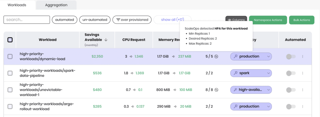- Proactive Reliability: ScaleOps features built-in auto-healing for OOM and liveness issues, ensuring higher workload availability.