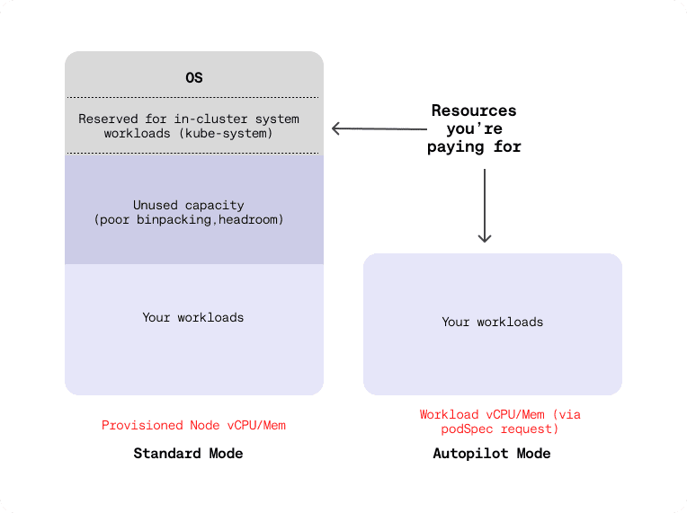 Standard mode vs. Autopilot mode (Adapted from Google Cloud)