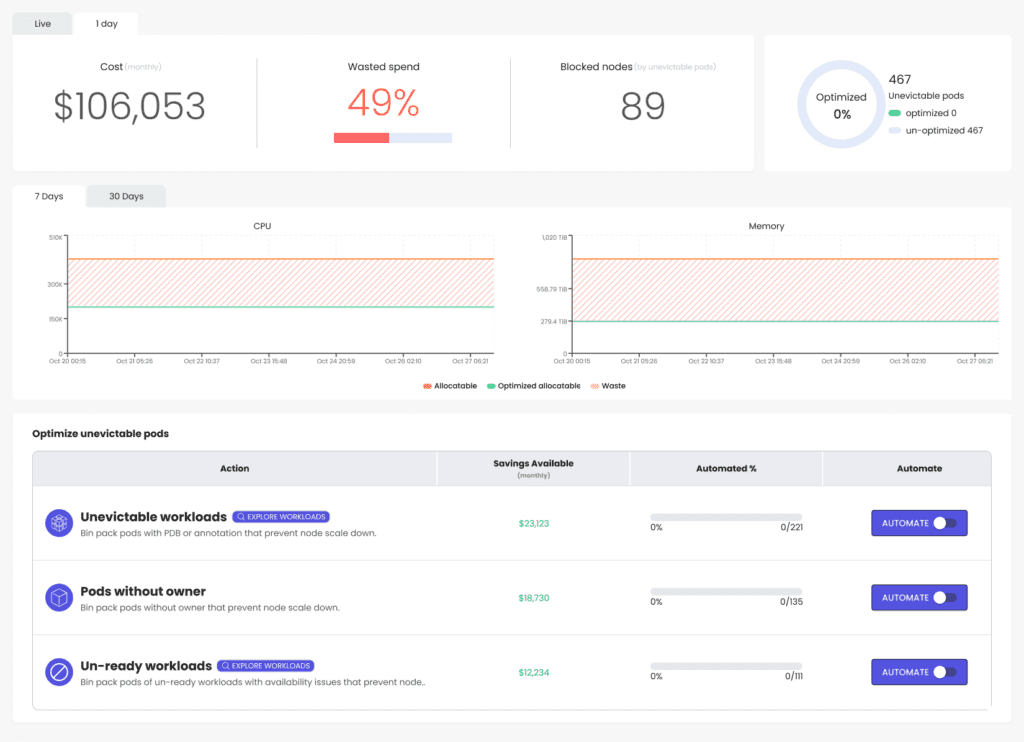 Visibility and Automation: Through intuitive dashboards, ScaleOps provides visibility into which workloads are unevictable and offers actionable insights to improve scheduling and scaling efficiency.